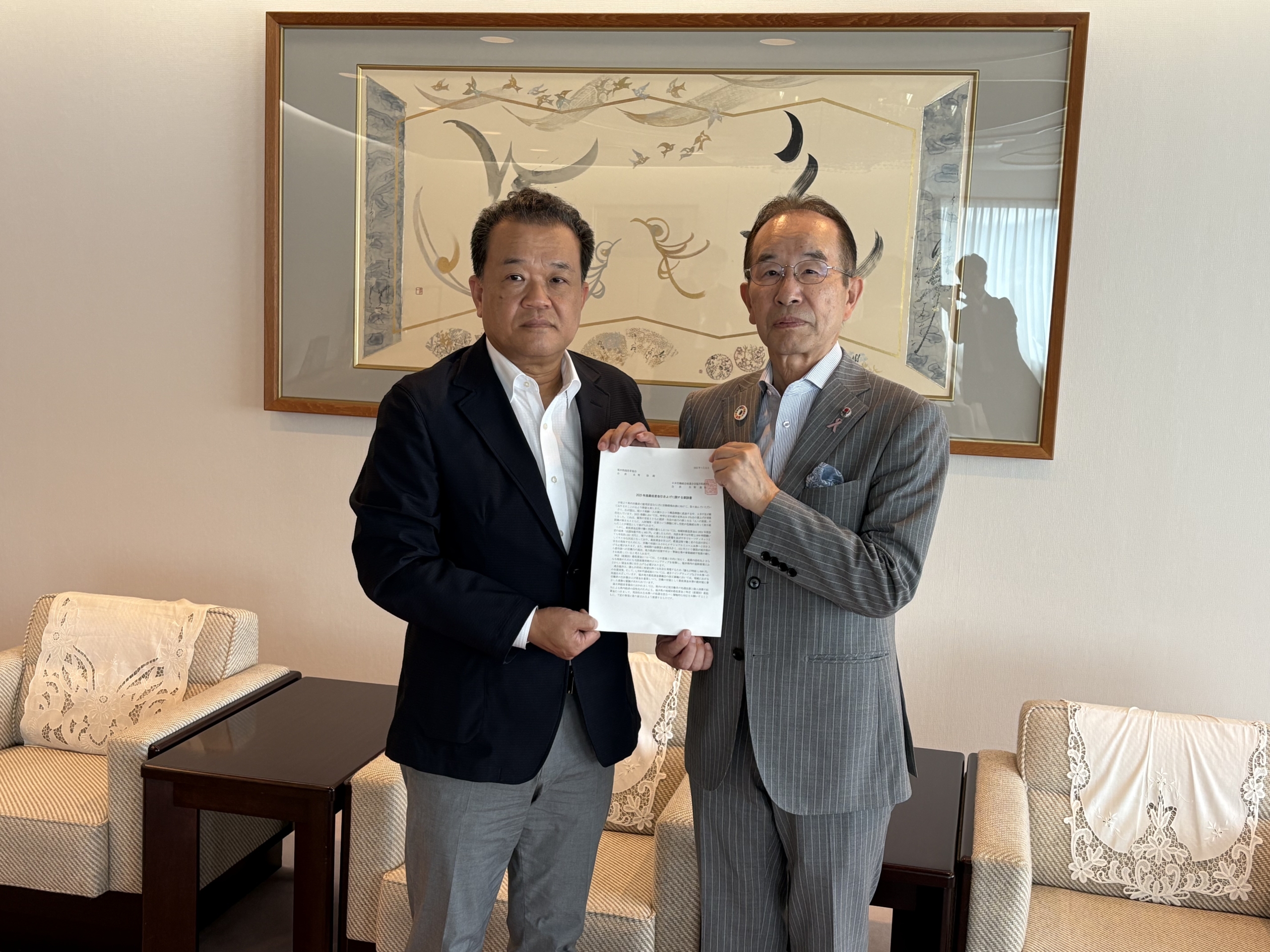 - 矢野会長より光野会長へ要請書を手交