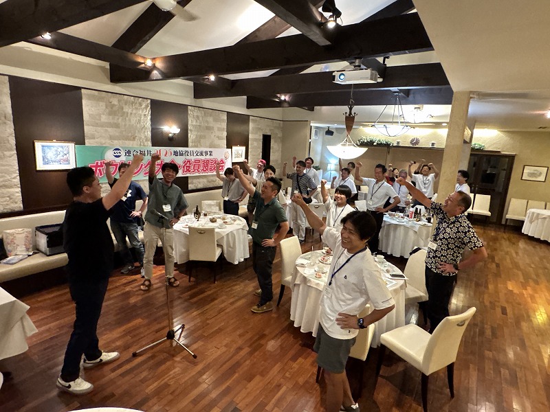 最後に、嶺南地協 香田議長のガンバロー三唱で懇親会を締めくくりました。