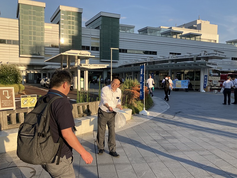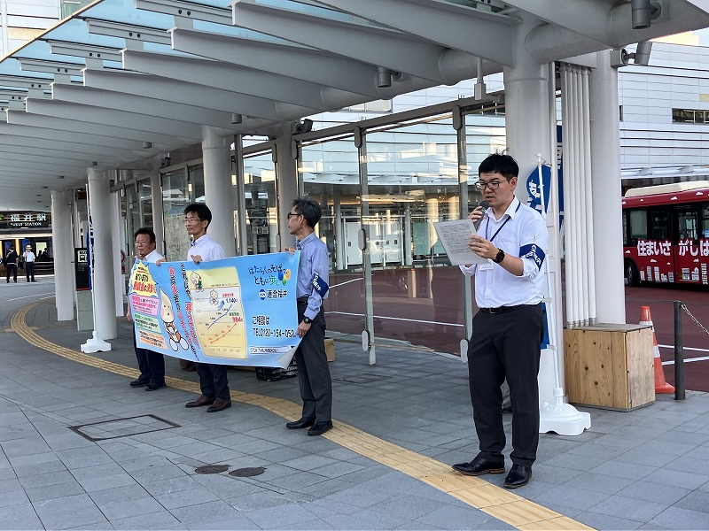 7月28日(月)17時半からJR福井駅西口にて街頭活動を実施しました。当日は最低賃金の現状などを記載したうちわを配布して呼びかけを行いました。