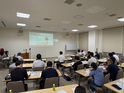 講演では、政府が目標としている育児休業の取得率と実態を確認し、出産を控えた女性の体調変化に理解を深めたうえで、男性が育児休業を取得する必要性を認識し、夫婦として必要な役割を自覚すること。また、育児休業取得をスムーズに行うためのポイントとして、代替え人材の確保や業務引継ぎなど必要な打ち合わせを事前に行っておくこと。コロナ禍で新しい働き方として導入されたオンライン・SNSの有効活用や送り出す職場における育休取得促進に向けた声掛けの必要性など具体的な例を紹介していただきながら説明をいただきました。