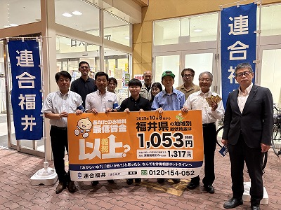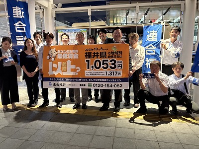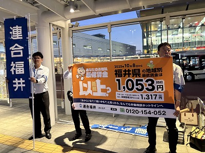 10月8日から改定・適用された福井県最低賃金額1,053円(時給)を広く県民・市民に知ってもらうため、下記日程にてラジオ出演や街頭活動による周知活動を実施しました。