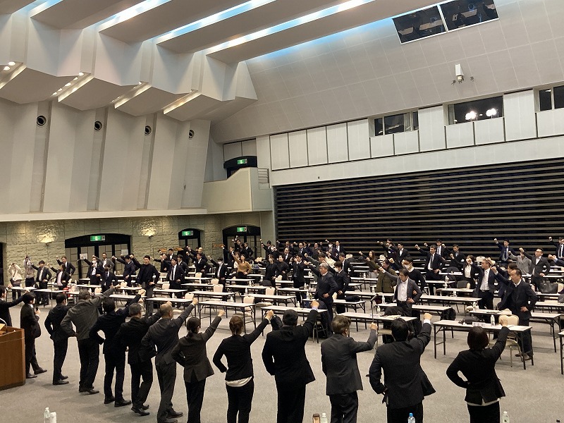 ▼最後は橋岡会長の発声により、力強い「団結ガンバロー」で締めくくりました!