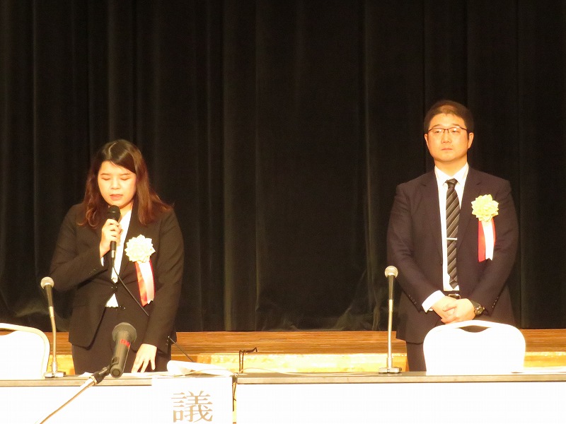 ▲議長に選出された中村地方委員(左)と赤松地方委員(右)